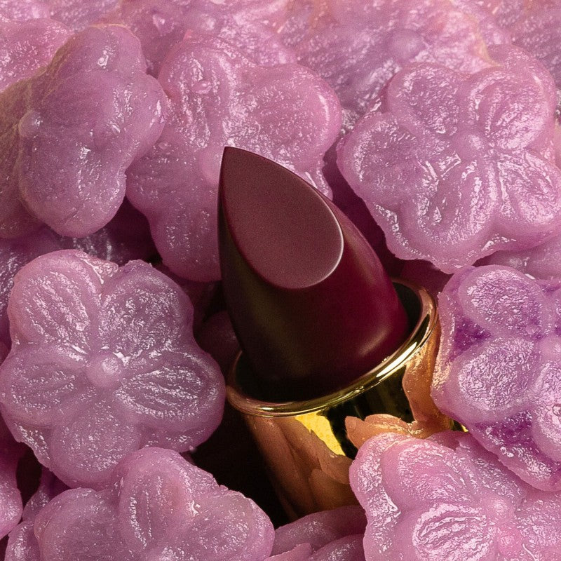 Victorian è un viola profondo che intensifica il colore delle labbra senza banalizzarlo. L'estratto di meadowfoam e la fragranza di violette evocano romanzi gotici, brughiera inglese ed eleganza d'altri tempi.