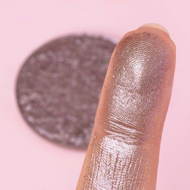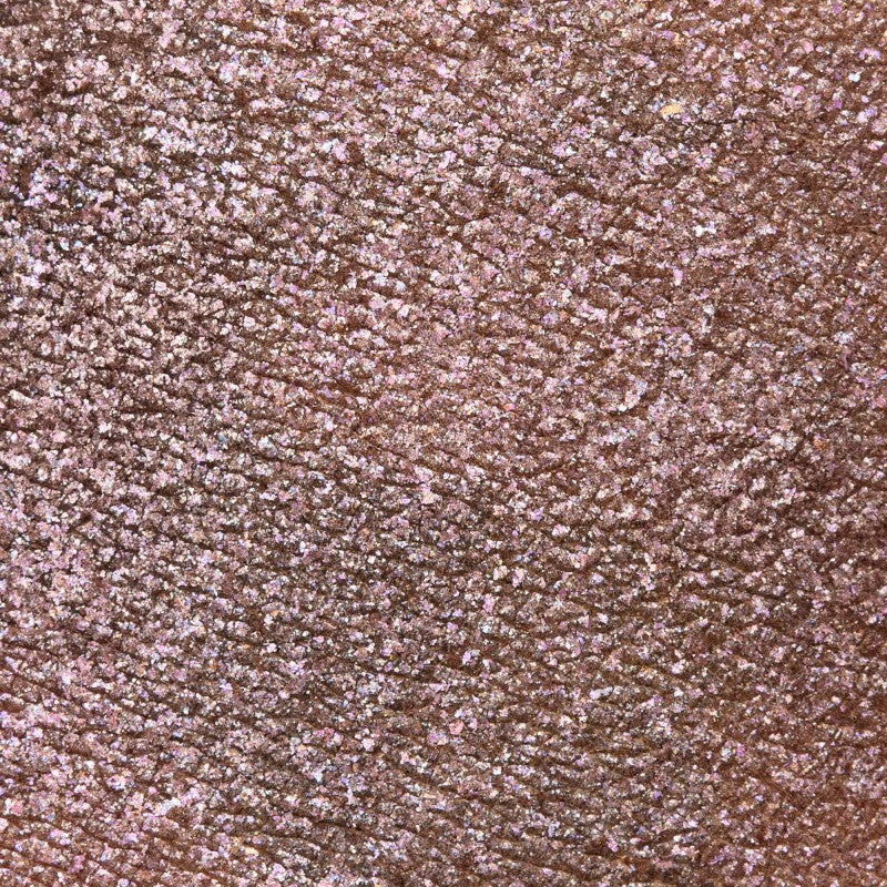 Forgotten Bronze è un bronzo fumoso trasparente con riflessi argento lilla. Texture Crystallize: polvere pressata matte coprentissima con riflessi cristallini di colore a contrasto.