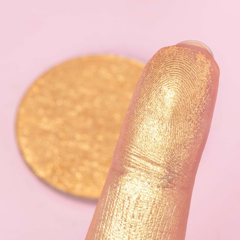Tumbaga è un oro brillante con base miele intenso e riflessi incandescenti. Texture Crystallize: polvere pressata matte coprentissima con riflessi cristallini di colore a contrasto.