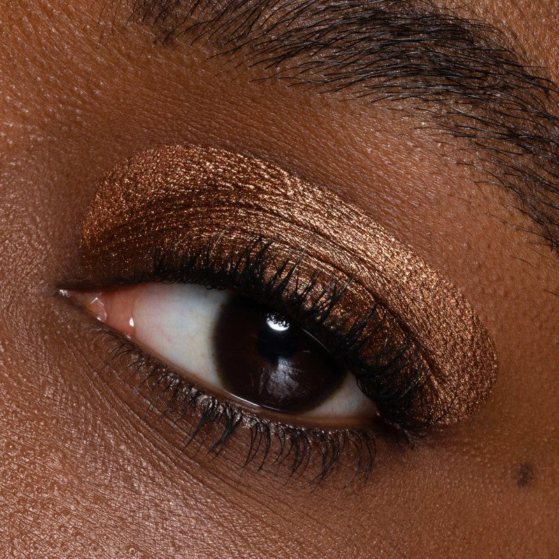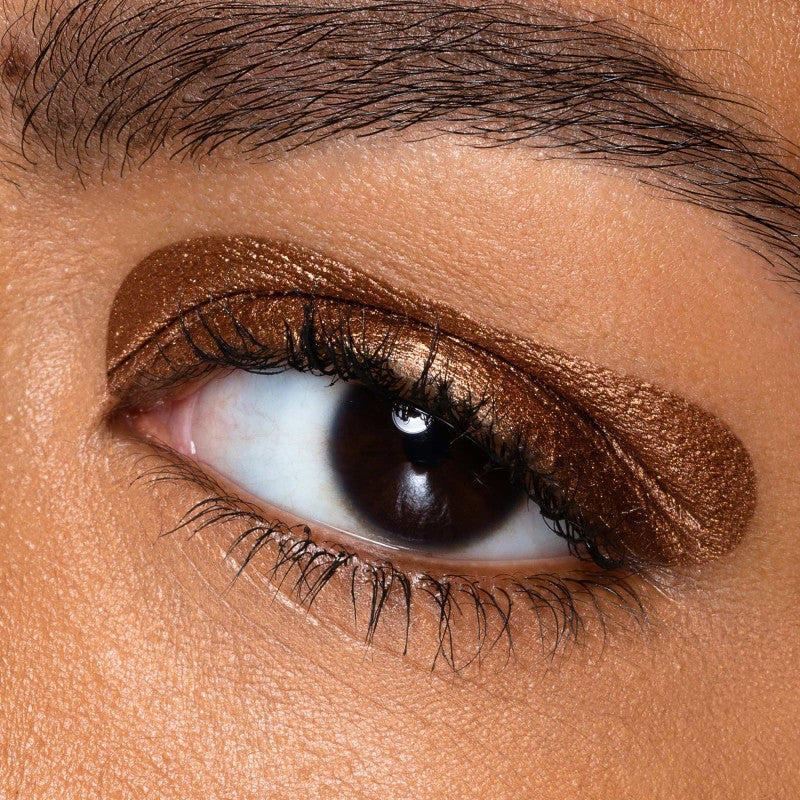 Caramello è un bronzo ramato lucente. Una tonalità calda e ricca di riflessi, ideale per esaltare i colori mediterranei e come base per gli ombretti dai toni del marrone dorato.